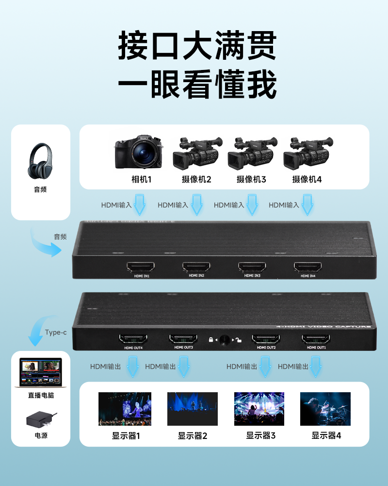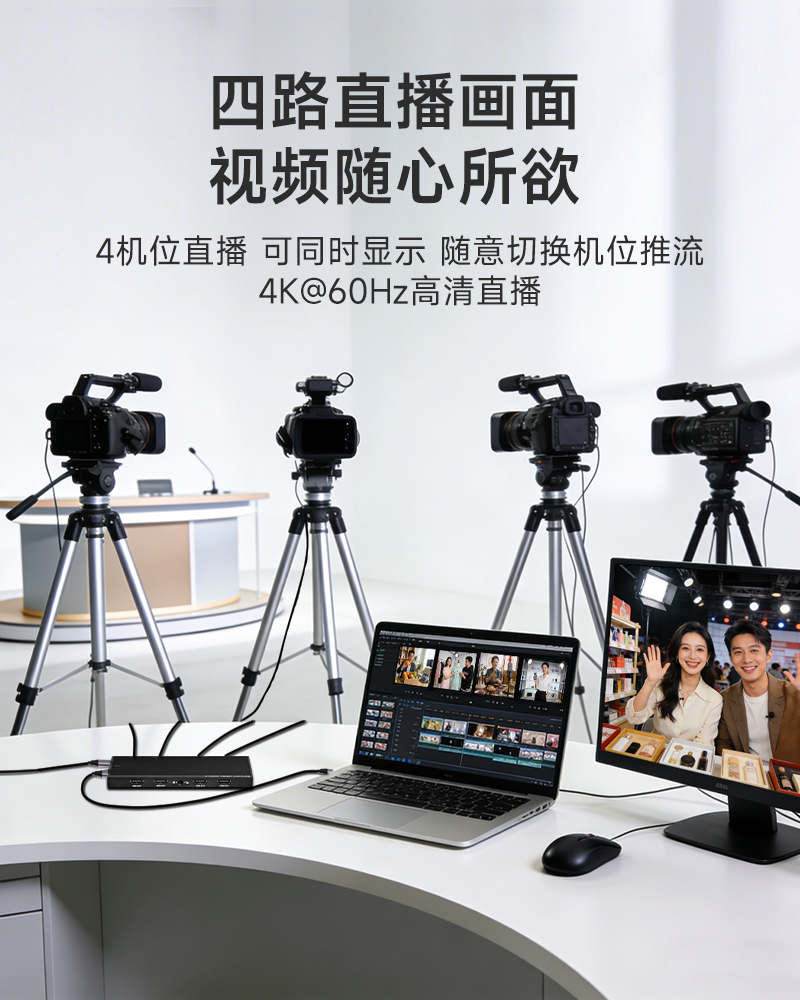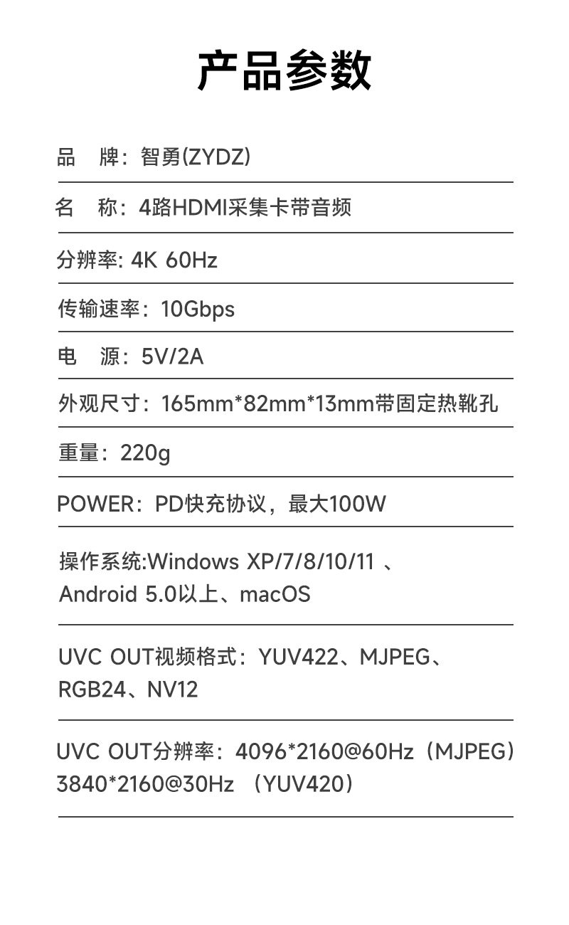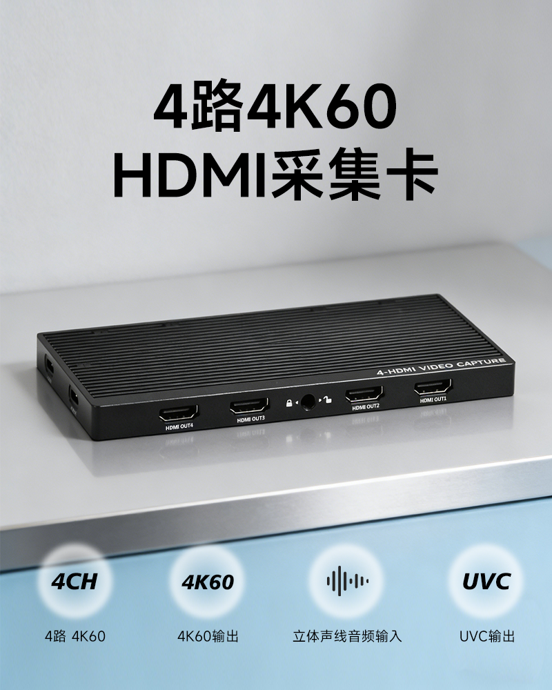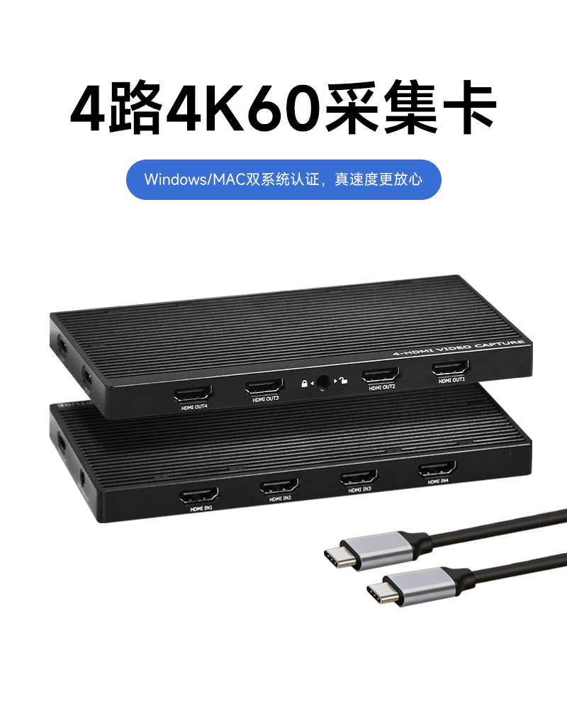 智勇 4路 4K@60Hz HDMI采集卡Type-C免驱带环出带音频高清PS4/Switch/vMix直播推流视频