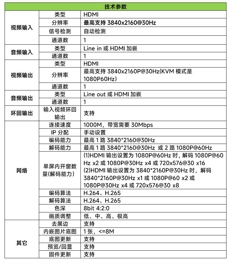 【视频输出】1路HDMI,最高支持3840x2160P@30Hz(KVM模式是1080P60Hz)