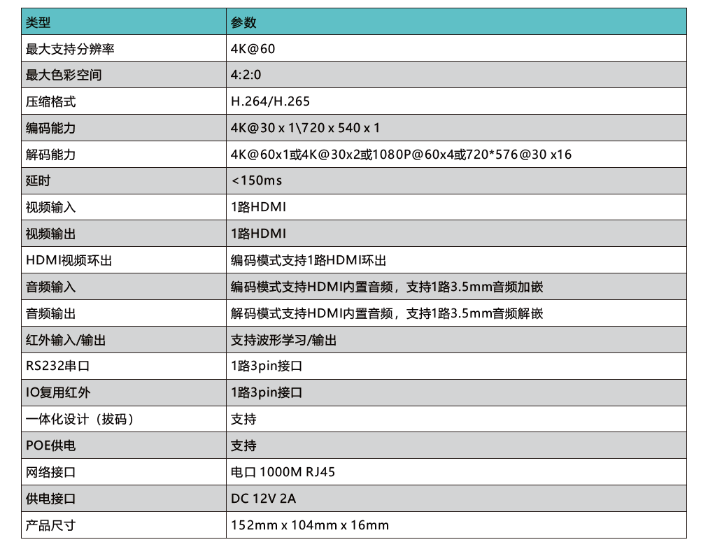 【音频输入】编码模式支持HDMI内置音频,支持1路3.5mm音频加嵌