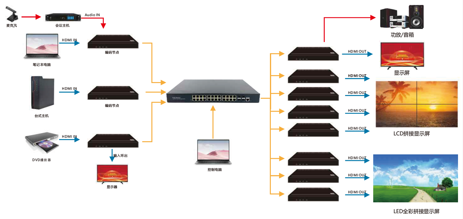 - 支持LCD/LED拼接;